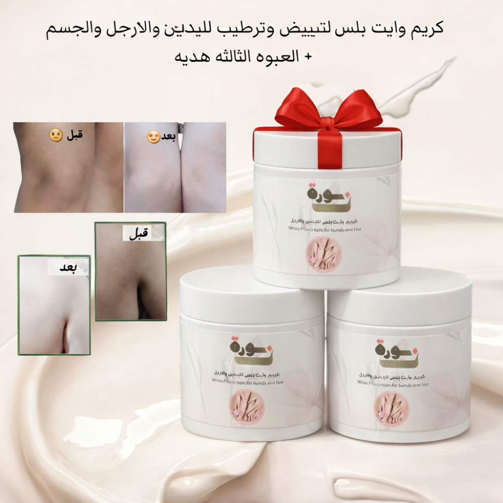 كريم وايت بلس لليدين والارجل والجسم هو كريم مخصص لتفتيح مضاعف وقوي وترطيب عميق توحيد الون والمفاصل والركب والاكواع وتفتيح وتحسين التصبغات والاسمرار يحتوي على مكونات طبيعية تعمل على ترطيب البشرة بعمق، وتقليل مظهر البقع والتصبغات والجفاف.